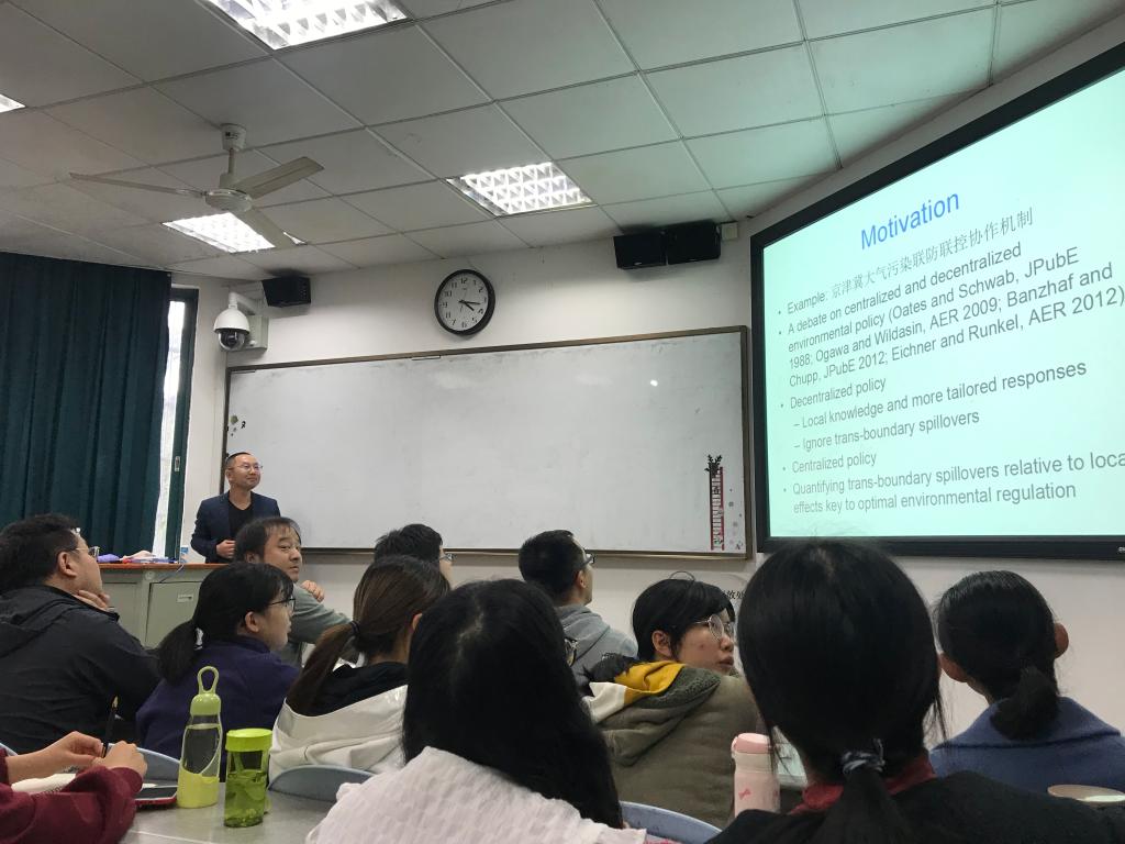 北校区水上教学楼211如期举行。此次研讨会的主题为“How Extensive are Air Pollution Spillovers? An Application to China’s Manufacturing Productivity”,主讲人为傅十和教授。
